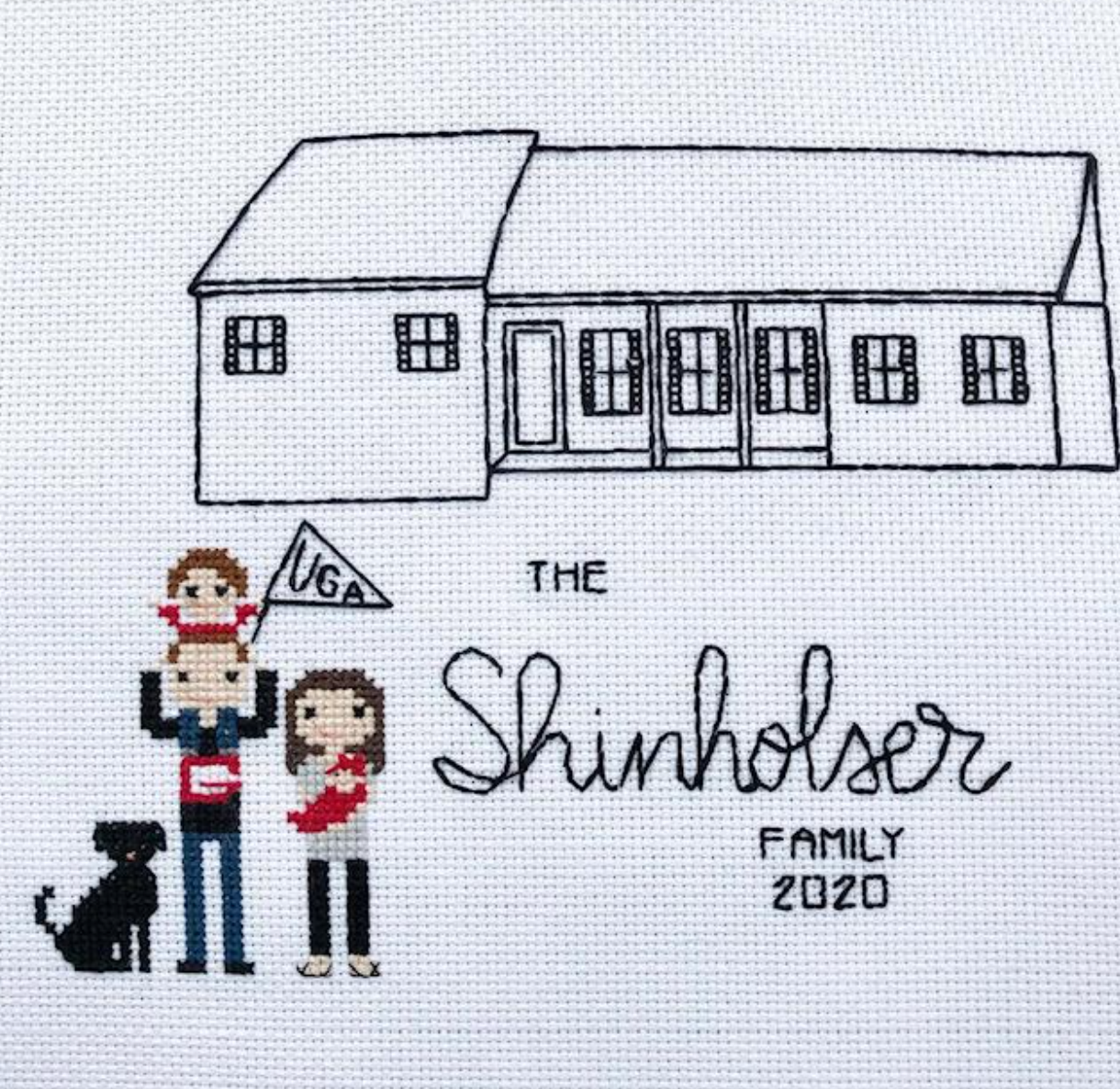 Your cross stitched family portrait will be stitched on white or sea salt colored DMC Aida 14 fabric (you may request a different color when ordering). The measurements of the final product will vary based on the number of people/pets in the portrait. Your portrait will be UNFRAMED. You can then frame it yourself in a hoop, in a shadow box or matted and framed.